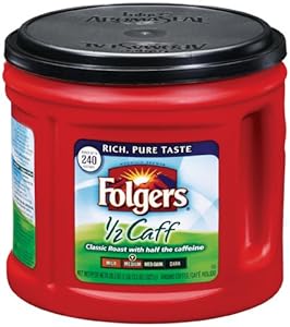 Folgers classic roast half caff has all the great taste of regular folgers coffee, but with half the caffeine.